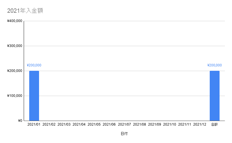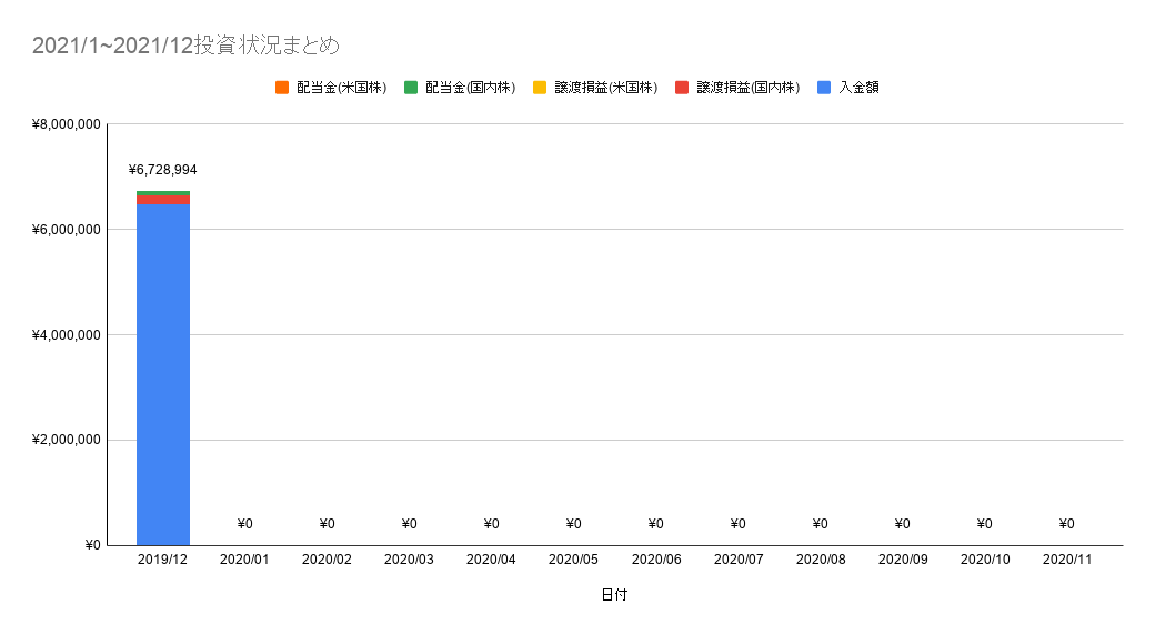 今月の利益は配当と譲渡益で+1万円だったので、入金分と合わせて+21万になっています。